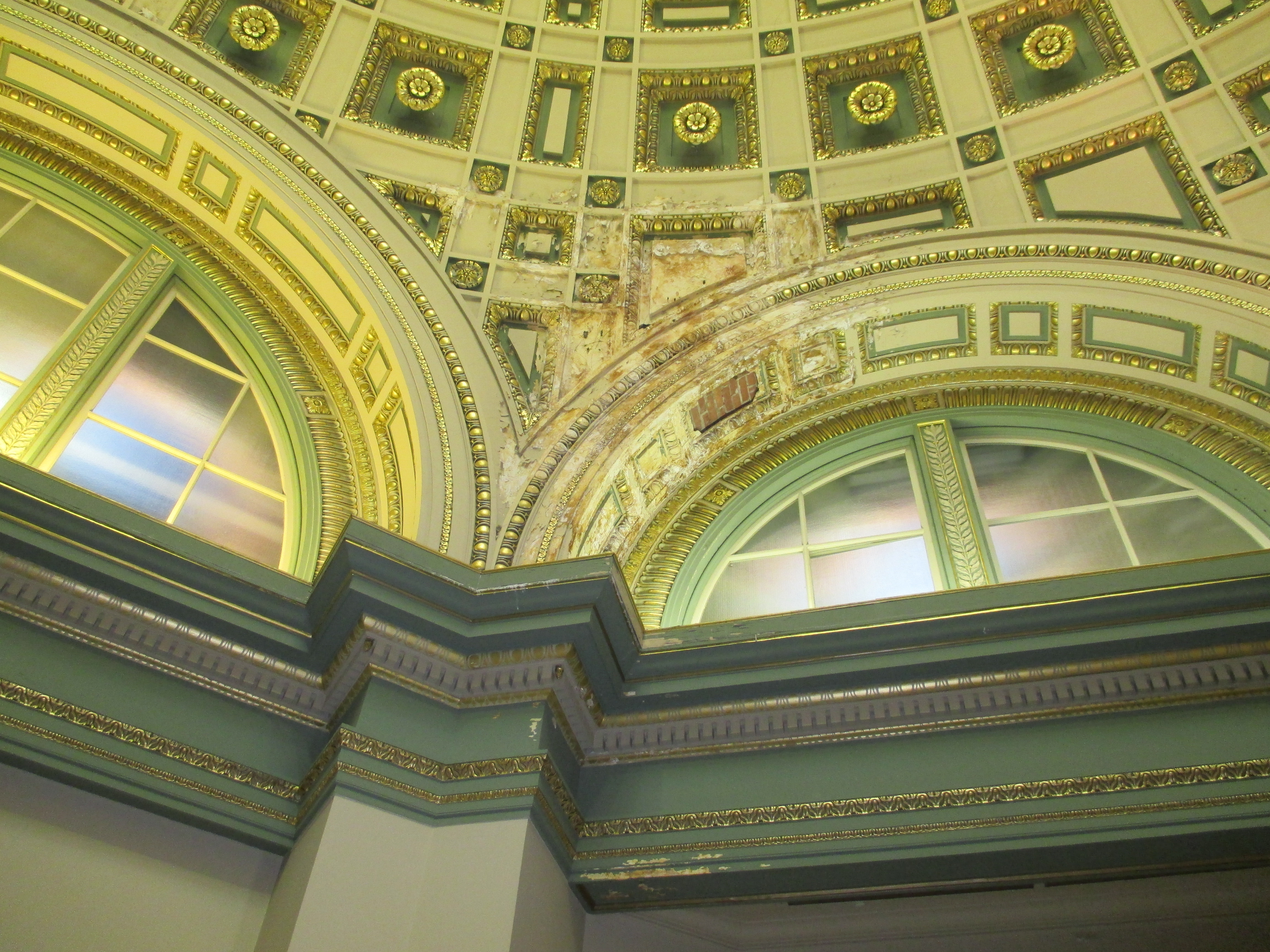As part of a renovation of this Federal courtroom, we were asked to perform gilt and decorative plaster restoration for the ceiling and niches. We started work on the ceiling. One of the challenges was to match the gold paint that had been used during the last renovation. With some...